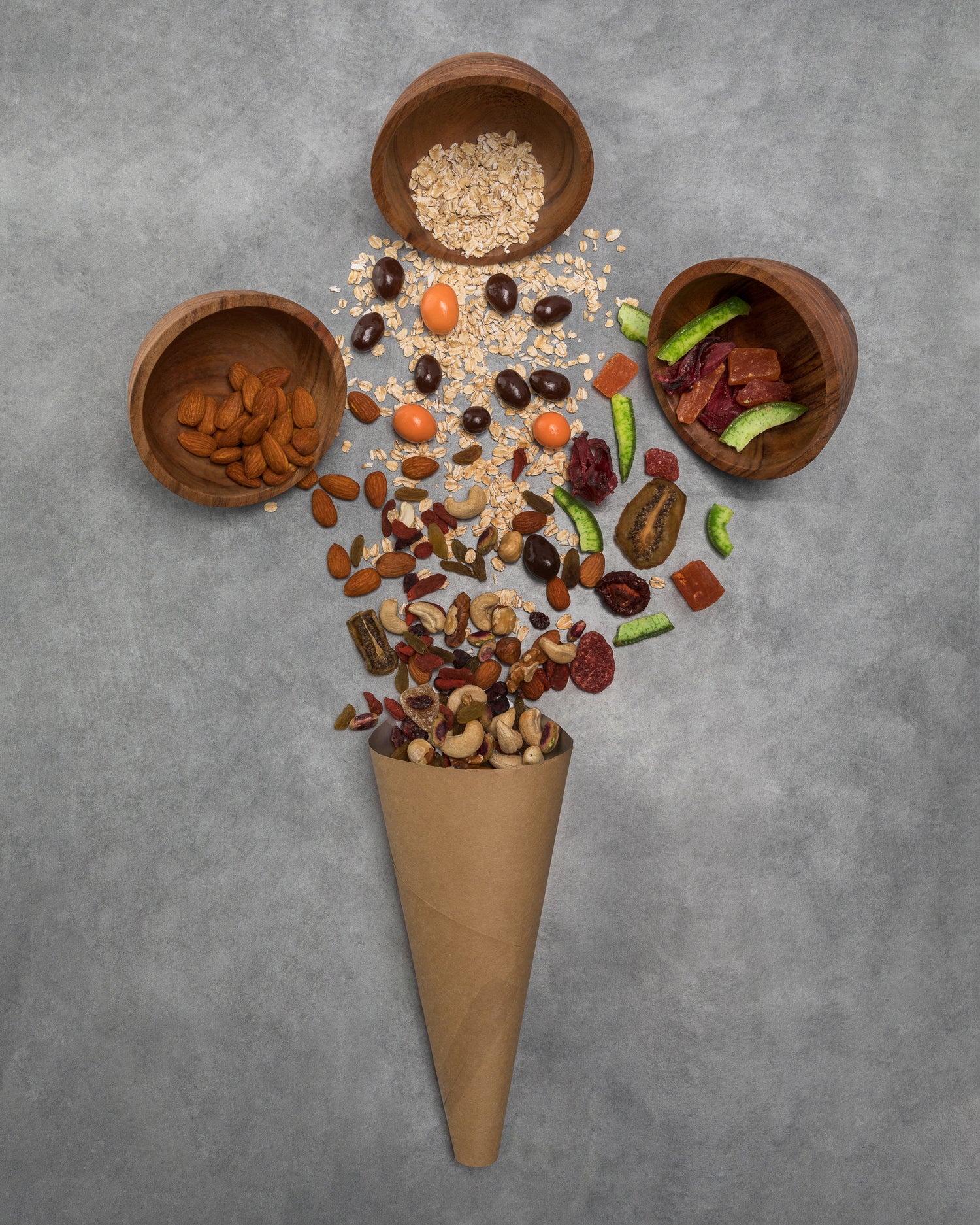 Nuts, dried fruits, and snacks